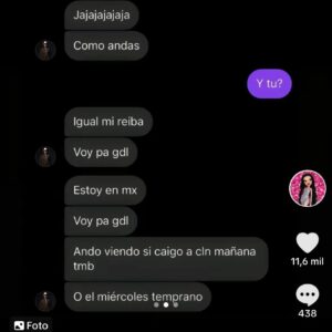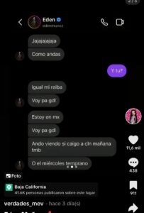 Mensajes de Edén Muñoz con una mujer.