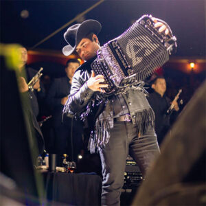 Alfredo Olivas tocando el acordeón.